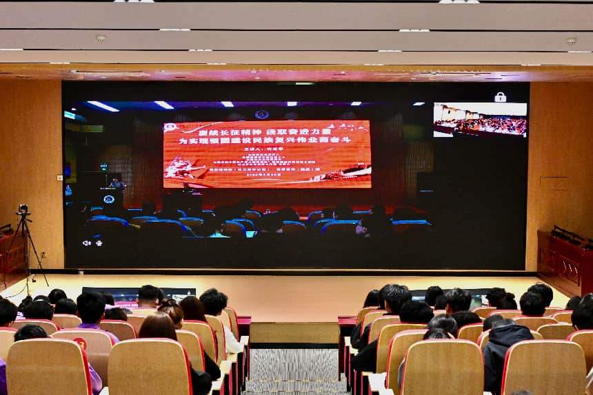 陈君丽在主持活动时表示,许老的宣讲站位高远、思想深刻、催人奋进,既是一堂脉络清晰、情真意切、直抵人心的历史课,更是一堂主题鲜明、内涵深邃、铸魂育人的思政大课。在学校七秩华诞启航新程之际,本次宣讲恰逢其时、意义深远,为全校师生带来了一场深刻的红色精神洗礼,引导全体师生回望长征壮举,牢记伟大长征精神、学习伟大长征精神、弘扬伟大长征精神,增强志气、骨气、底气,在新征程上不断攻坚克难、从胜利走向胜利。